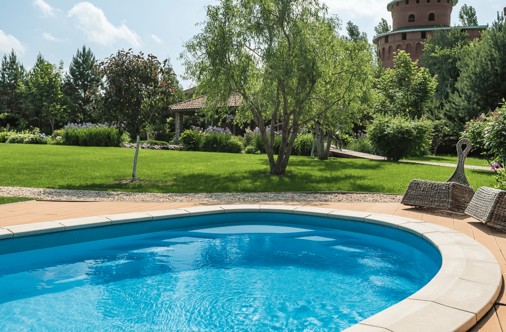 При создании покрытия «Хуко», дизайнеры FRANMER вдохновились цветом воды в тенистых лесных озерах. Глубокое сочетание сине-зеленого, с мягкими переливами голубого передает таинственную атмосферу лесных озер. Бассейн с покрытием «Хуко» настроит на спокойный отдых.